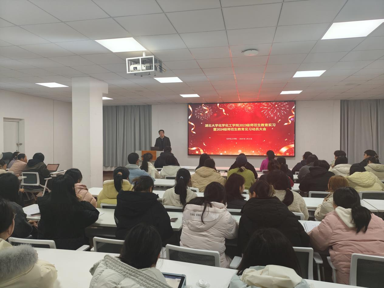 2026年3月6日晚7点,化学化工学院2023级教育实习暨2024级教育见习动员大会在化院D216成功举行。本次动员大会邀请了学院分管教学工作副院长汪航行、化学系主任李法宝、化学(师范类)专业负责人李玲、各实习点带队指导老师等参会,对实习安排、管理要求与注意事项进行了详细部署,会议由李法宝教授主持。首先,李法宝主任给本次实习的带队指导老师以及同学们介绍了实习安排与管理机制。本届教育实习周期已由往届的10周调整为20周...