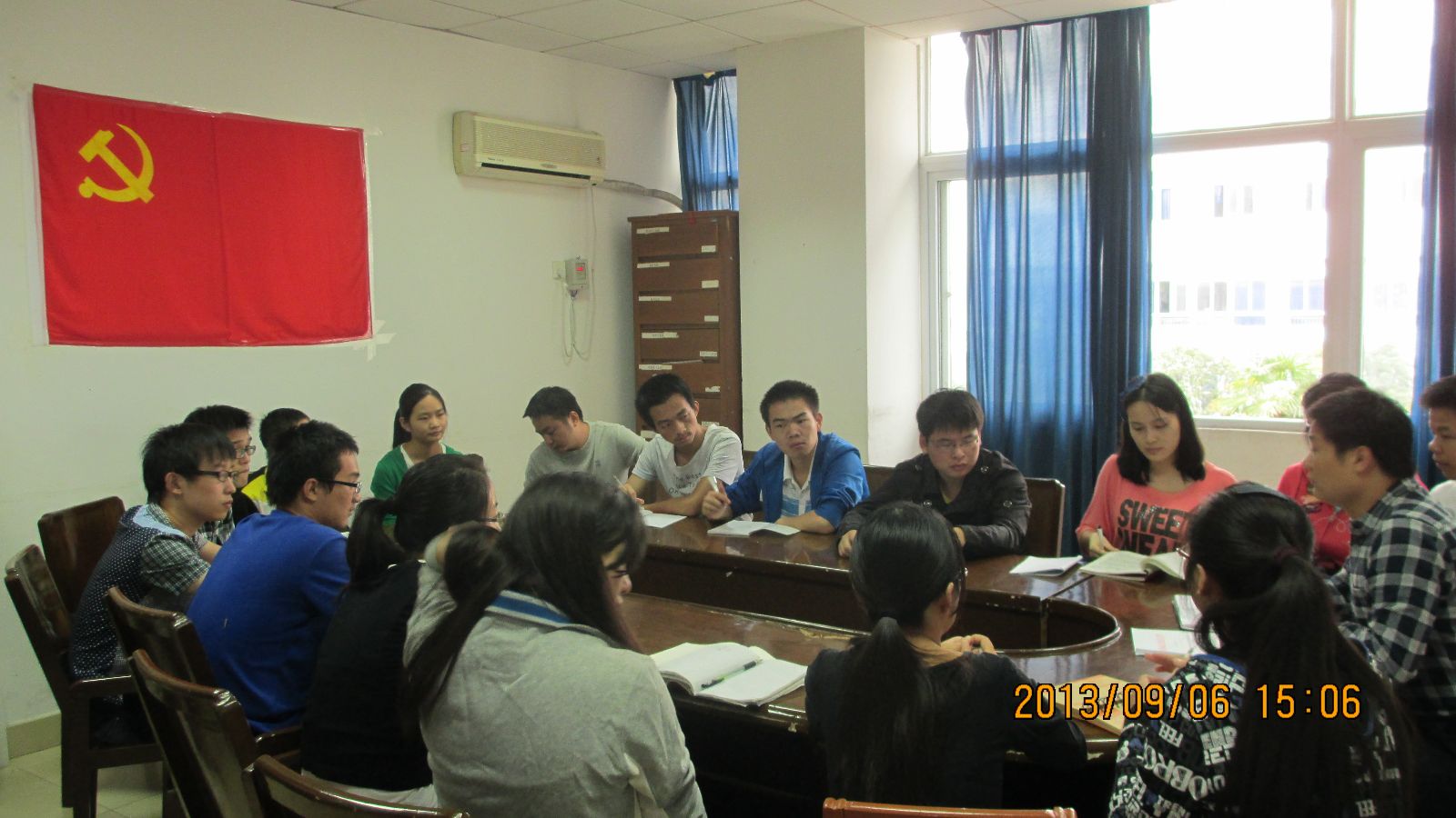 会上,范磊老师首先围绕“什么是党的群众路线”向在座的学生党员作了详细的分析与阐释。他总结了以往党内存在的一些问题,并指出在现在的党员中存在形式主义、官僚主义、享乐主义和奢靡主义的弊病。随后,他就“如何加强党员干部与师生之间的联系”的话题与各位党员展开了讨论。“我觉得我们班里不存在“四风”问题。但是,我感觉班里气氛不融洽,班级内部同学之间交流不够。我建议以班级为单位,组建党员小组,加强同学交流。”10级化工班党员代表发表了自己的意见。随着问题讨论的展开,现场气氛渐渐变得活跃,更多的学生党员针对“党员与老师、同学之间如何相处”、“学生党员如何处理好自己在同学中的地位”、“学生党员如何更好地在学生群体中发挥模范带头作用”等问题进行了深入讨论。