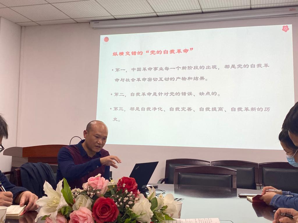 随后,徐信华教授从内涵、历史、经验三个维度出发,对三个问题分别进行了解答。他指出,自我革命即自我净化、自我完善、自我革新、自我提高;党的自我革命引领社会革命的历史演进可分为新民主主义革命时期、社会主义革命和建设时期、改革开放时期和新时代四个阶段;要善于总结历史经验,坚持强化党史学习教育、强化党的建设。