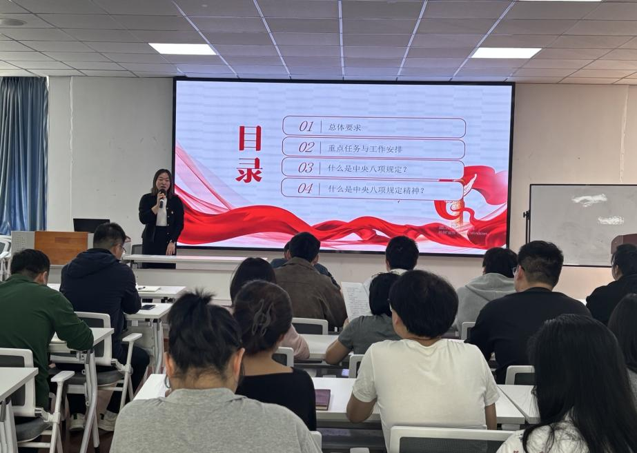 会上,学院党委书记陈琴作动员讲话,从总体要求、重点任务与工作安排、中央八项规定内容、中央八项规定精神实质四个方面进行了深入解读。她强调,全院上下要进一步提高政治站位,深刻领会中央八项规定精神的重大意义,切实增强贯彻落实的思想自觉和行动自觉。同时,会议下发了《中共英国365集团官网委员会深入贯彻中央八项规定精神学习教育实施方案》,陈琴对各党支部接下来开展的专项工作提出了明确要求,确保学习教育走深走实。
