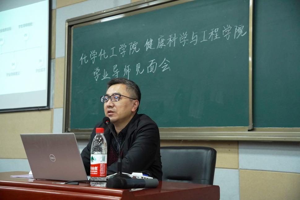 会后,两院学业导师与领导班子前往B100、B300教室与学生进行交流。化学化工学院领导从师资队伍、学科专业、人才培养、科学研究和未来期待等方面为学生介绍学院情况。院长张修华指出:“化学化工学院拥有优秀的师资力量,能为大家提供丰富的学习资源。未来,学院还会根据个人兴趣爱好和能力侧重进行专业分流,为学生提供更广阔的工作平台,让学生将知识外化于行,学有所得。”他鼓励学生,“只要肯做,就大有可为。”