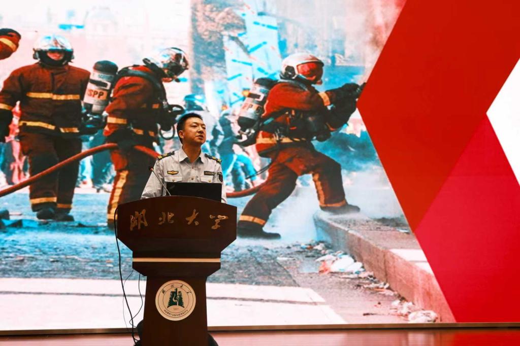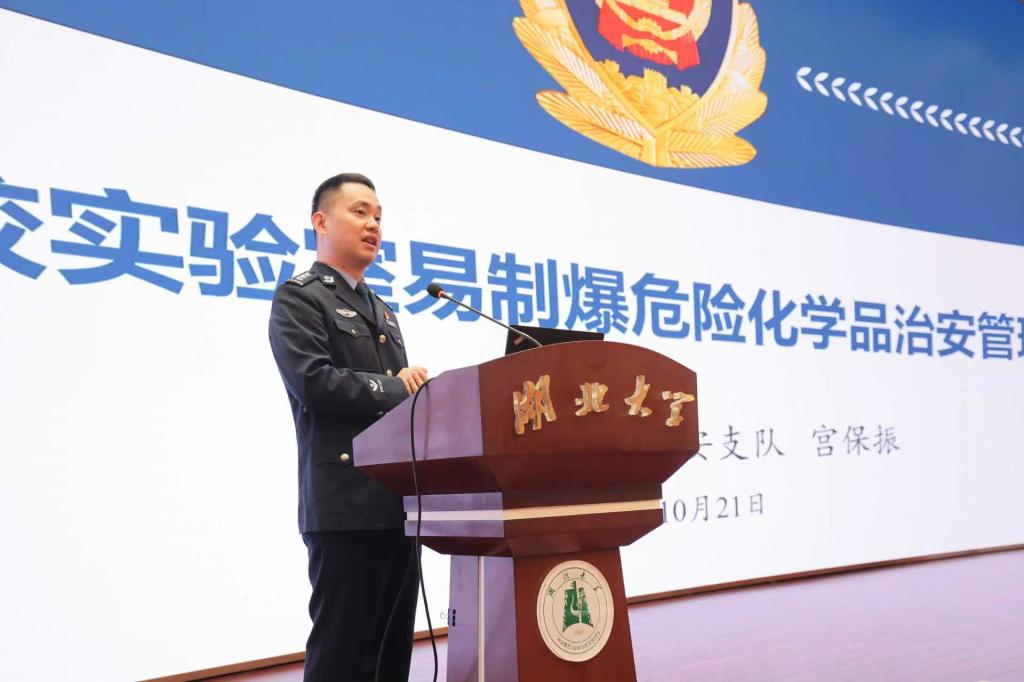 150余名研究生新生和实验员现场聆听了两场专题报告:武汉市公安局治安大队宫保振以“高校易制爆危险化学品治安管理”为题,全面阐述公安机关对高校危化品的管理要求和主要做法;武汉市进安消防中心周文强教官以“全民消防、生命至上——安全用火用电”为题,普及丰富的消防安全知识和消防救护技能,并指导师生开展灭火和逃生演练。